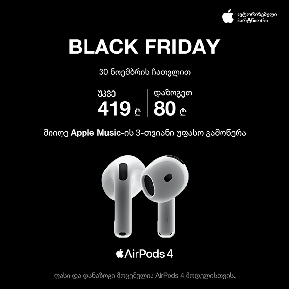 - აუდიო აქსესუარები - ისიამოვნეთ AirPods-ების უმაღლესი ხარისხის ჟღერადობის, თანამედროვე სტილის და ფუნქციონალის სრულყოფილი კომბინაციით.