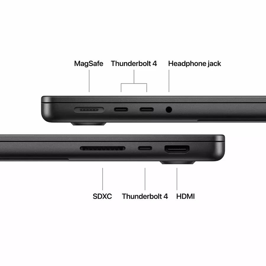1 x SDXC, 1 x HDMI, 1 x MagSafe 3, 3 xThunderbolt 4, 1 x 3.5mm