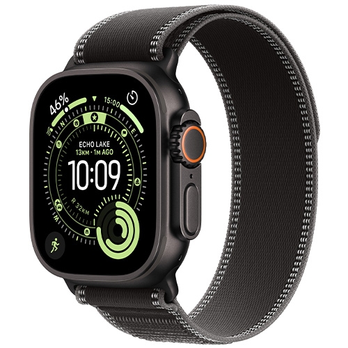 Apple Watch Ultra 3 GPS + Cellular 49mm Black Titanium Case with Black/Charcoal Trail Loop - M/L