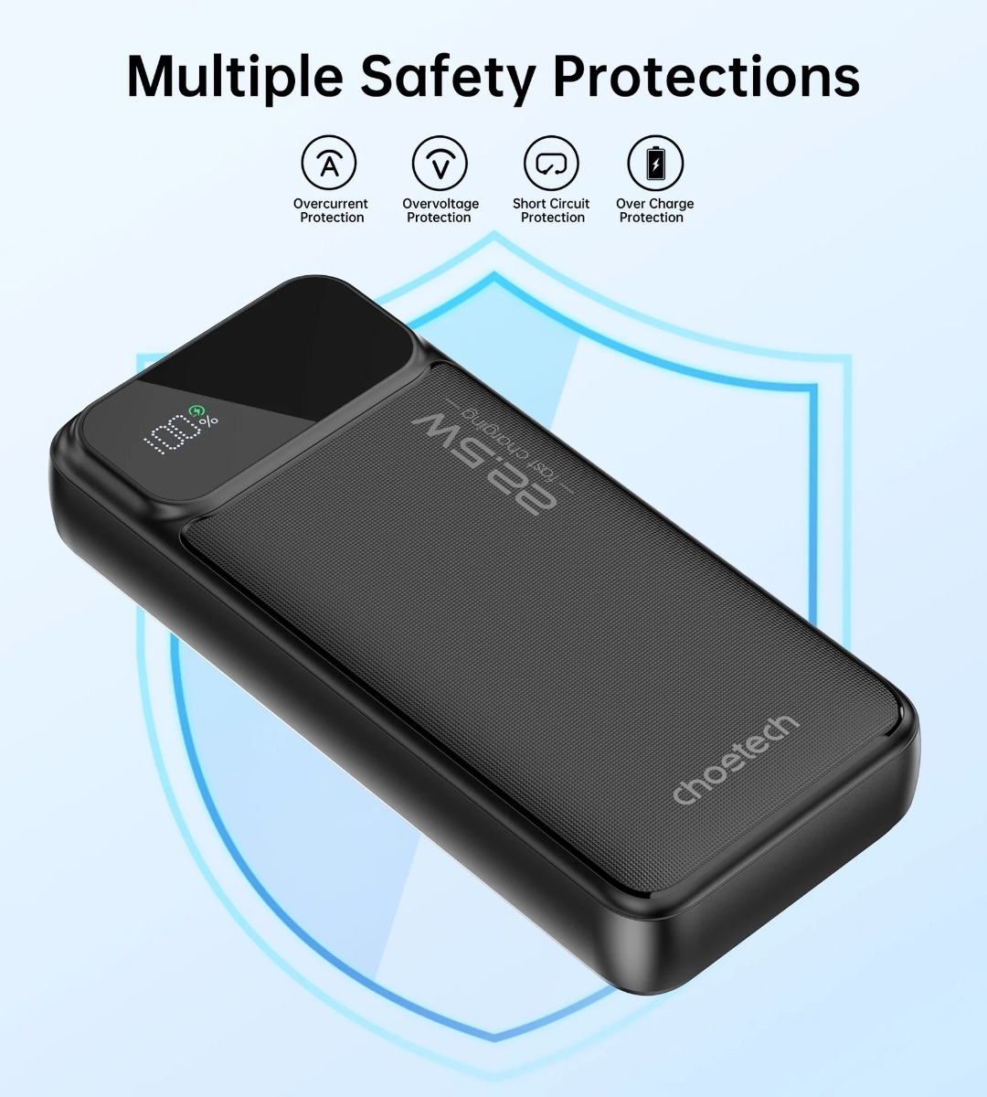 Choetech B729 PD22.5W Dual USB-A+TYPE-C Power Bank Black