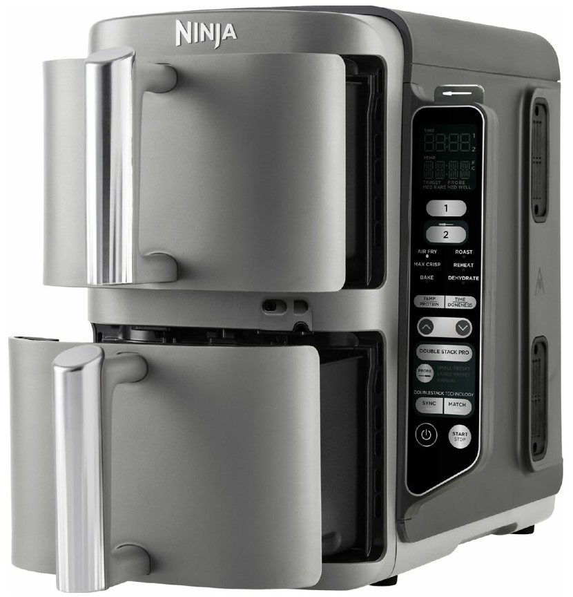The Ninja Double Stack XL smart cook design places two cooking trays one above the other. This gives more usable space without a larger footprint on your counter. The trays fit most family meals and allow separate food items to cook together without mixing flavors.