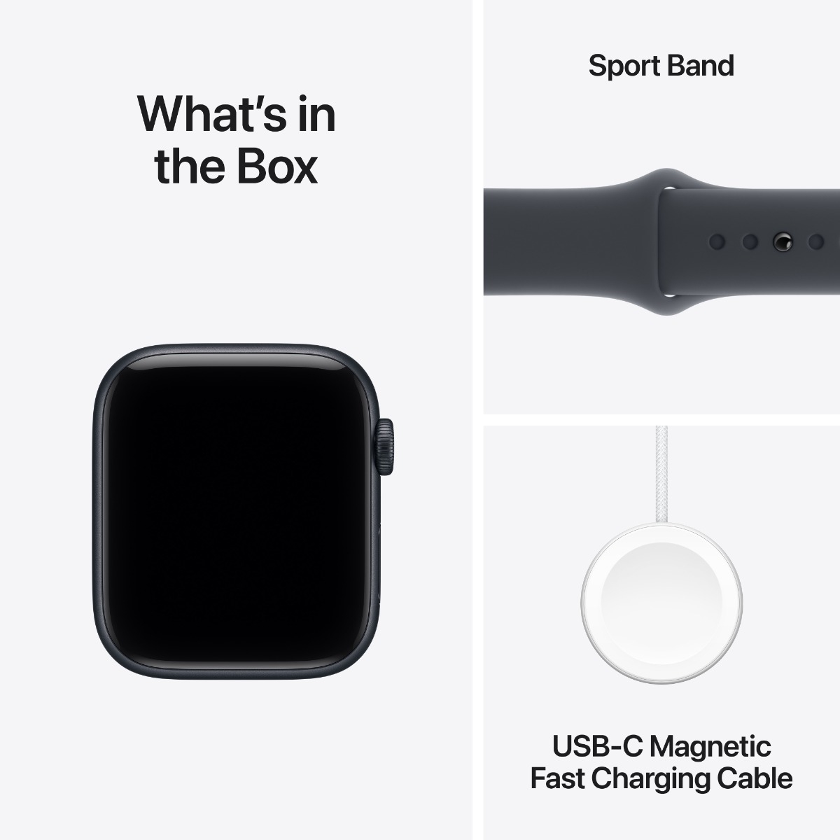 The 44mm size delivers a clear view while staying comfortable for most wrists. If you want a dependable everyday smartwatch with useful health and convenience tools, this model is a practical choice. The package includes the watch, band in M/L size, and charger so you can start using it right away. Apple Watch GPS 44mm Midnight Aluminium Case Midnight Sport Band ML SE3 is ready for daily life and active days.