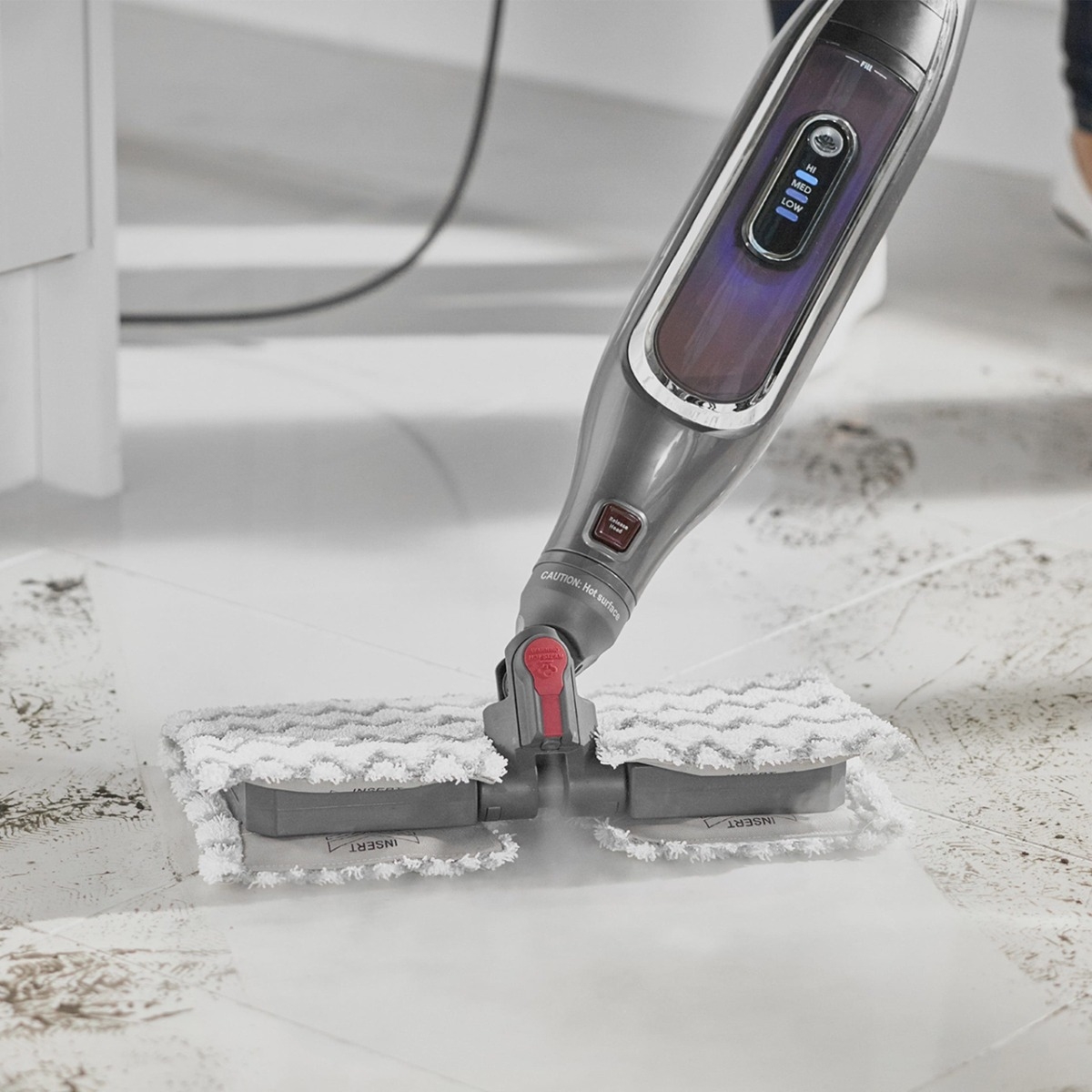 - Start cleaning by gliding the mop across the surface.