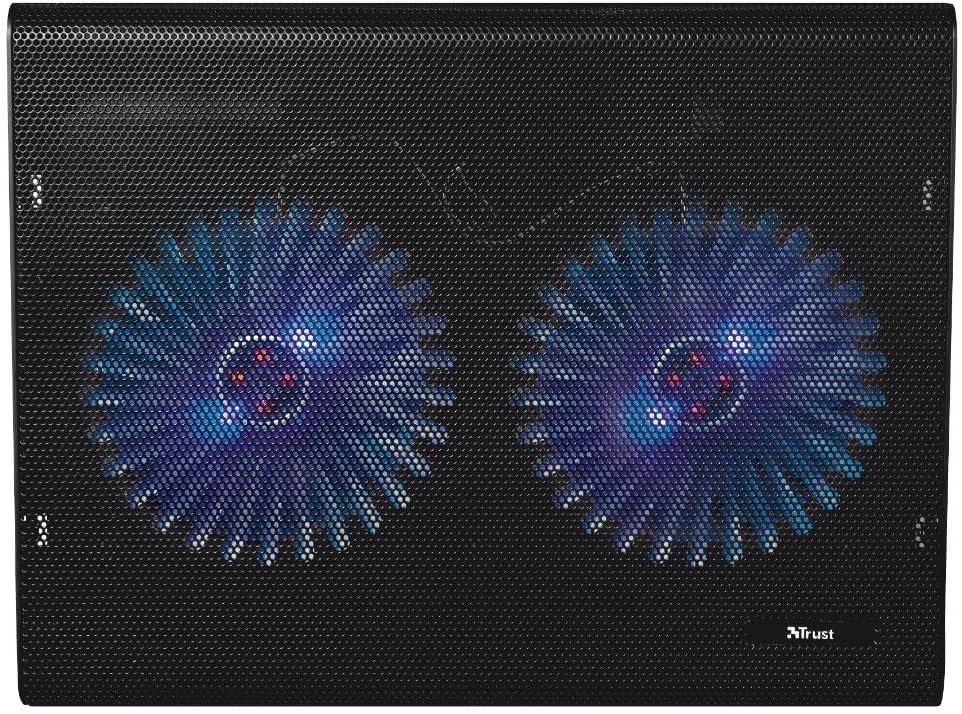 The Trust Azul Laptop Cooling Stand Dual Fans works with most laptops up to standard sizes. Clean the stand with a soft cloth and avoid liquids near the fans. Store it flat or in a laptop bag when not in use to save space.
