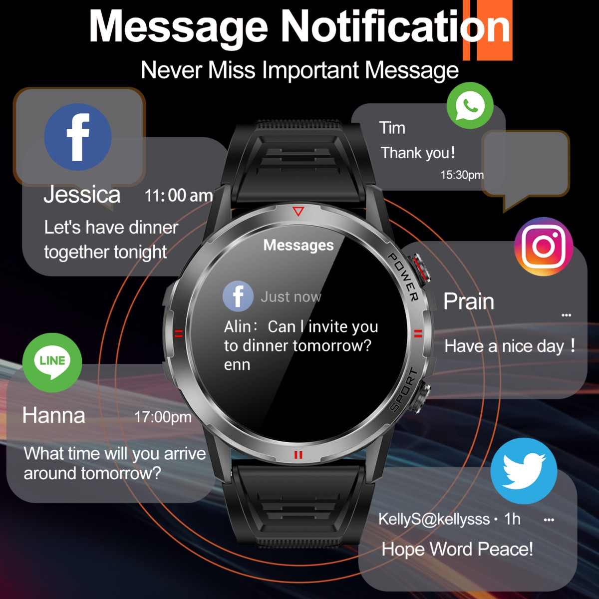 - Notifications: Receive calls, messages, and app notifications directly on your wrist, ensuring you stay connected.
