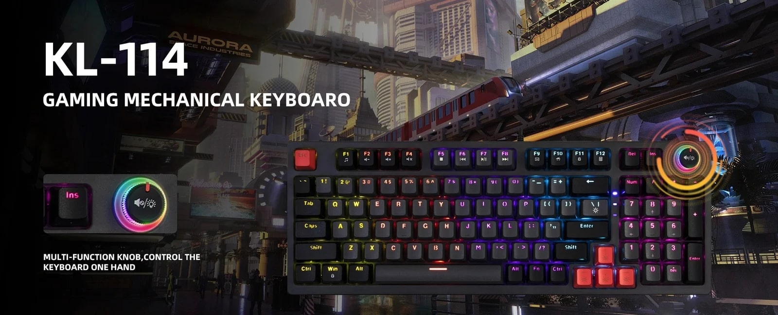 Jedel KL114 Mechanical Gaming Keyboard With Knob Rainbow Lightning Type-C 1.6m Gray