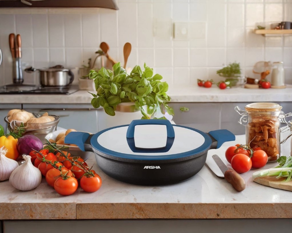 ტაფა-ქვაბი გრანიტის შავი/ლურჯი CO135-3107 32 სმ Arshia არის მრავალფუნქციური და გამძლე ჭურჭელი, რომელიც იდეალურად მოერგება როგორც ყოველდღიურ, ისე უფრო მასშტაბურ მომზადებას. დიდი დიამეტრი და გრანიტის საფარი უზრუნველყოფს კომფორტულ გამოყენებას და სტაბილურ შედეგს.