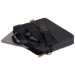 ჩანთა დამზადებულია წყლისადმი გამძლე მასალისგან, რომელიც იცავს მოწყობილობას მსუბუქი ნესტისა და წვიმისგან. შავი, მინიმალისტური დიზაინი მარტივად ერგება როგორც საქმიან, ისე ყოველდღიურ სტილს.