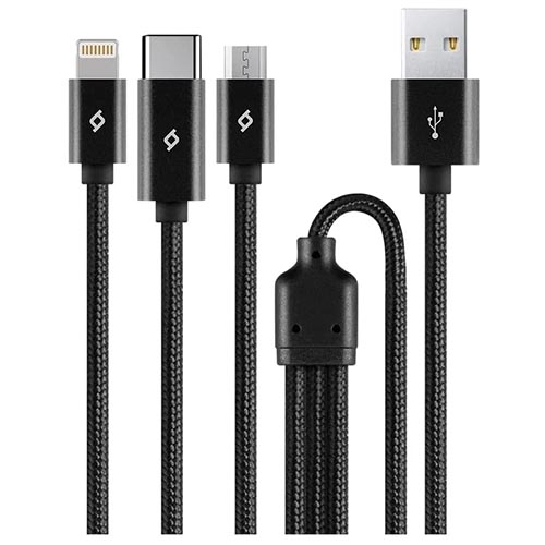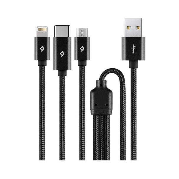Ttec AlumiCable Trio USB-A - USB-C/Lightning/Micro USB 1m Black 2DK39S