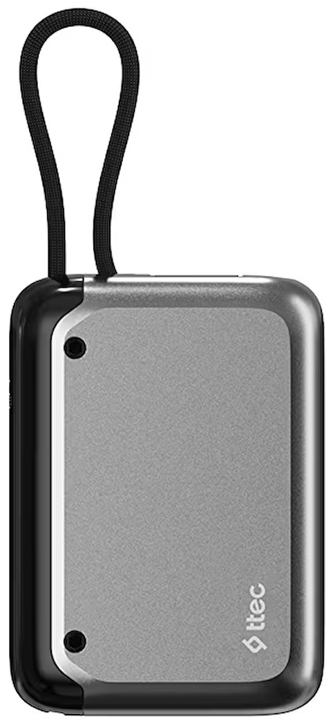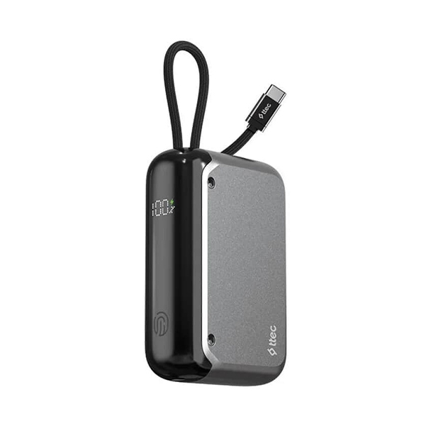 Ttec ReCharger LCD 10000mAh PD 30W Power bank with Built-in USB-C Cable Gray