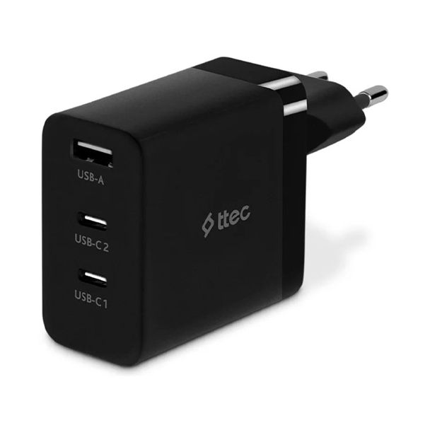 Ttec SmartCharger Trio GAN 65W Travel Fast Charger 2 USB-C+USB-A Black 2SCG03S